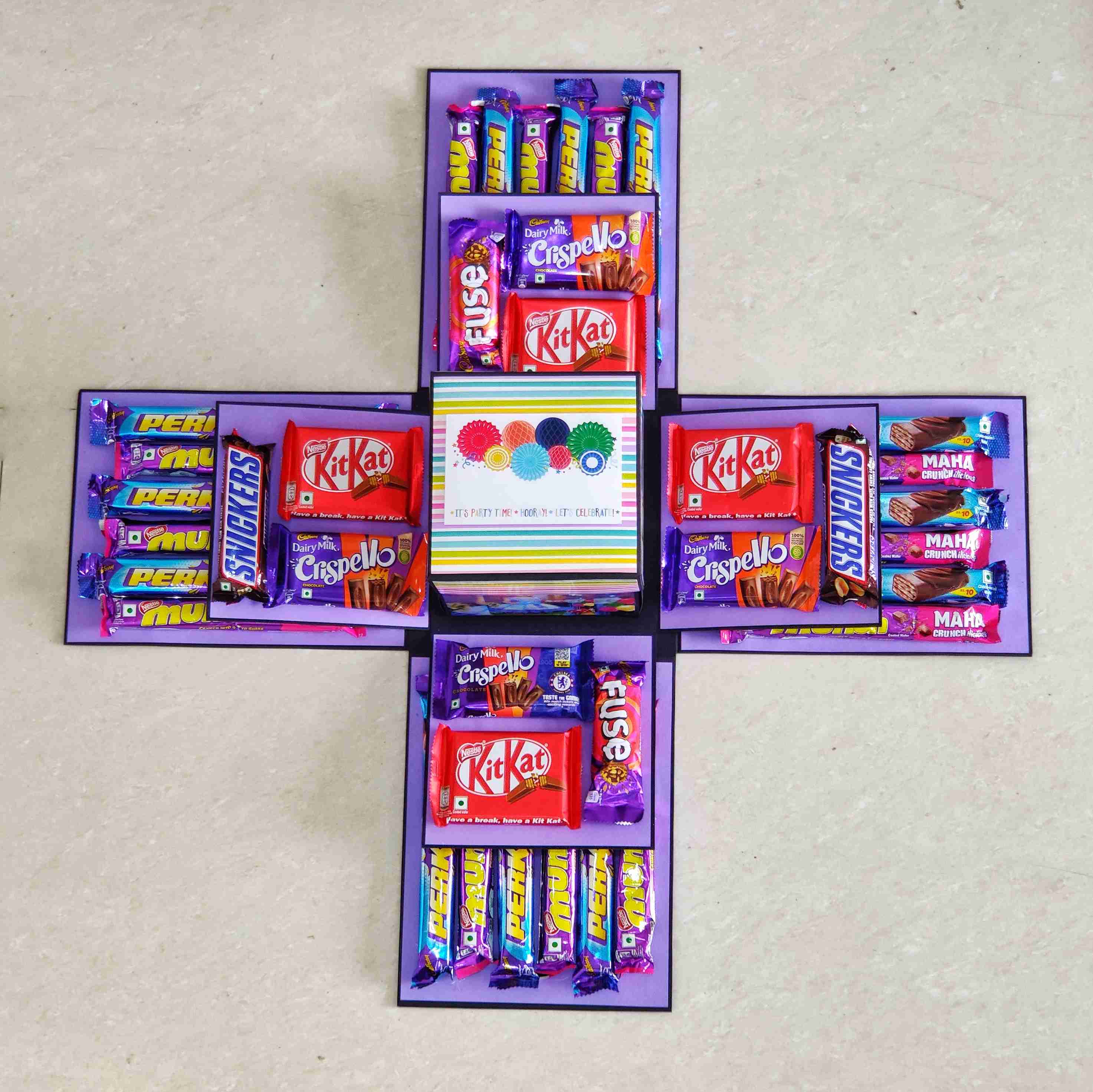 Amaze your loved ones with this artfully crafted chocolate explosion box. Each layer unveils delightful treats, making every moment unforgettable.