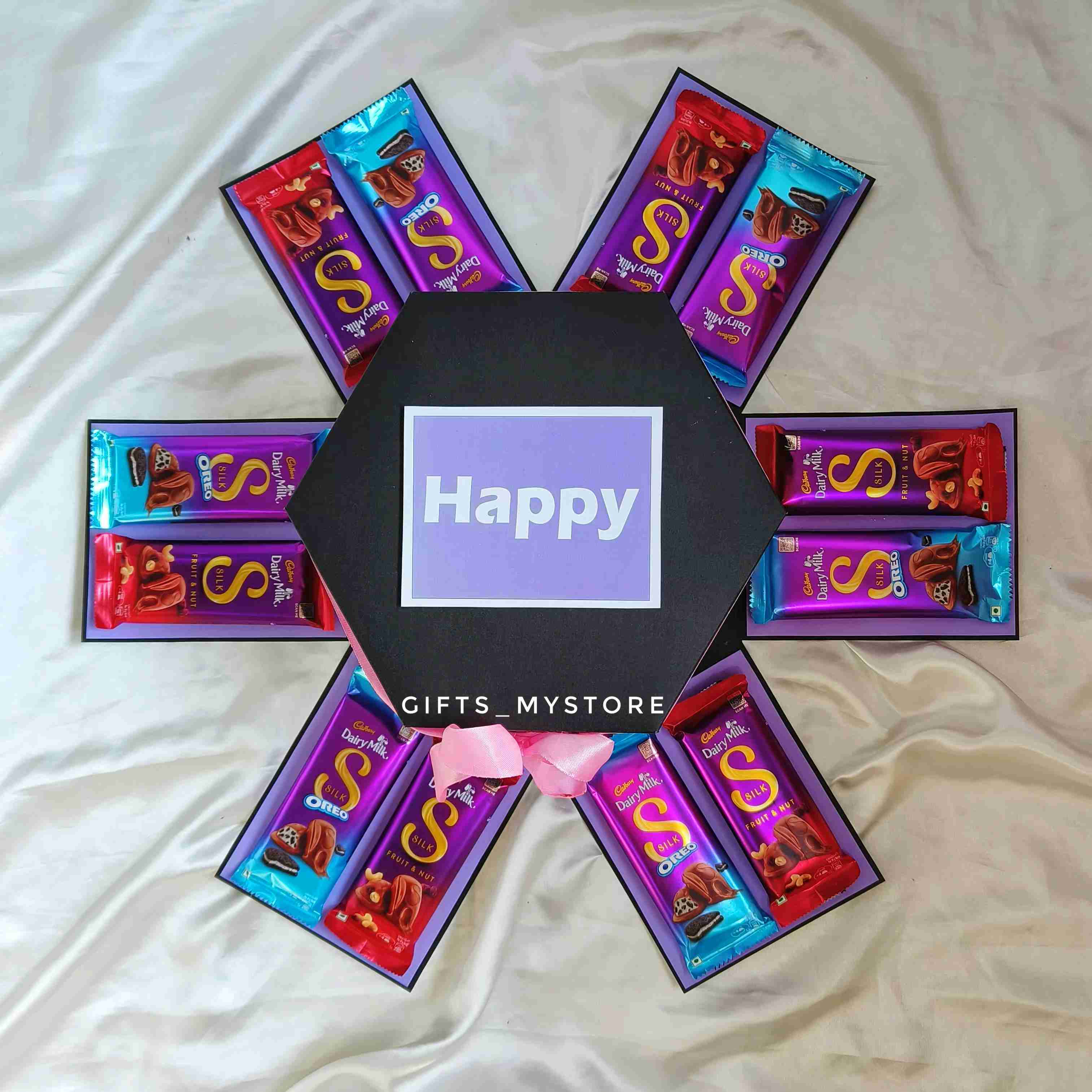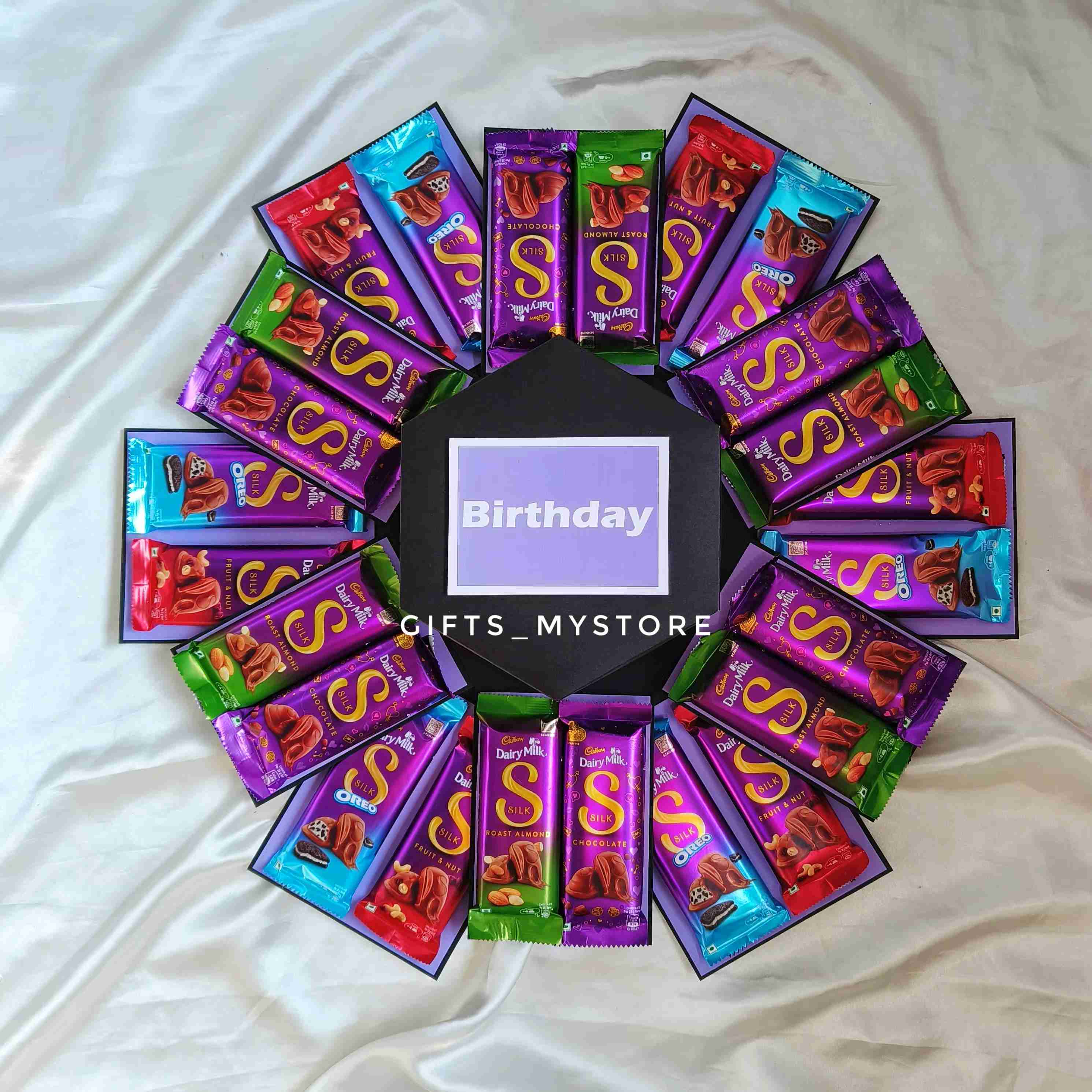 Surprise your loved ones with this luxuriously crafted premium Dairy Milk Silk explosion box. Each layer reveals silky chocolate treasures, designed to melt hearts and create sweet memories.