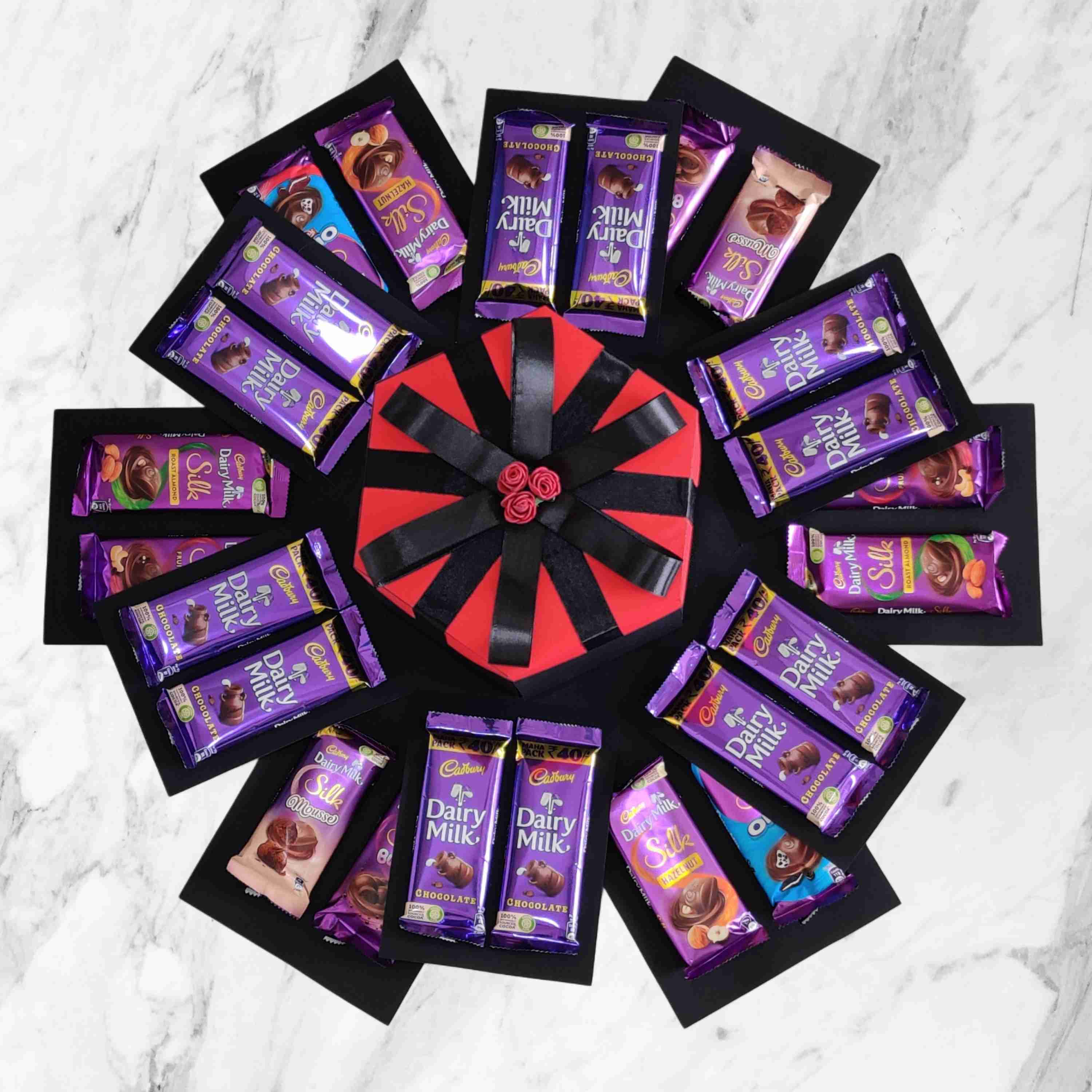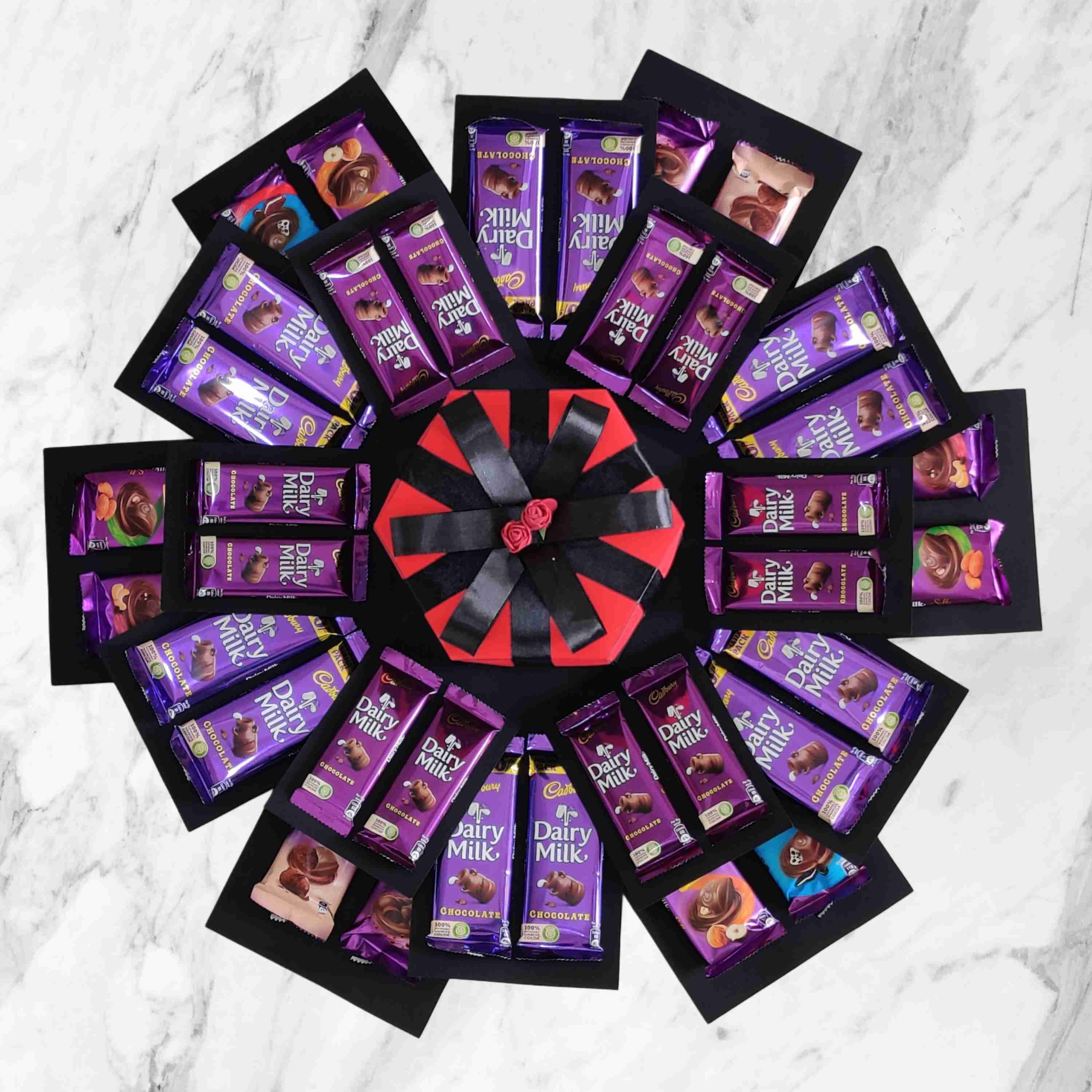 Surprise your loved ones with this luxuriously crafted Premium Chocolate explosion box. Each layer reveals silky chocolate treasures, designed to melt hearts and create sweet memories.