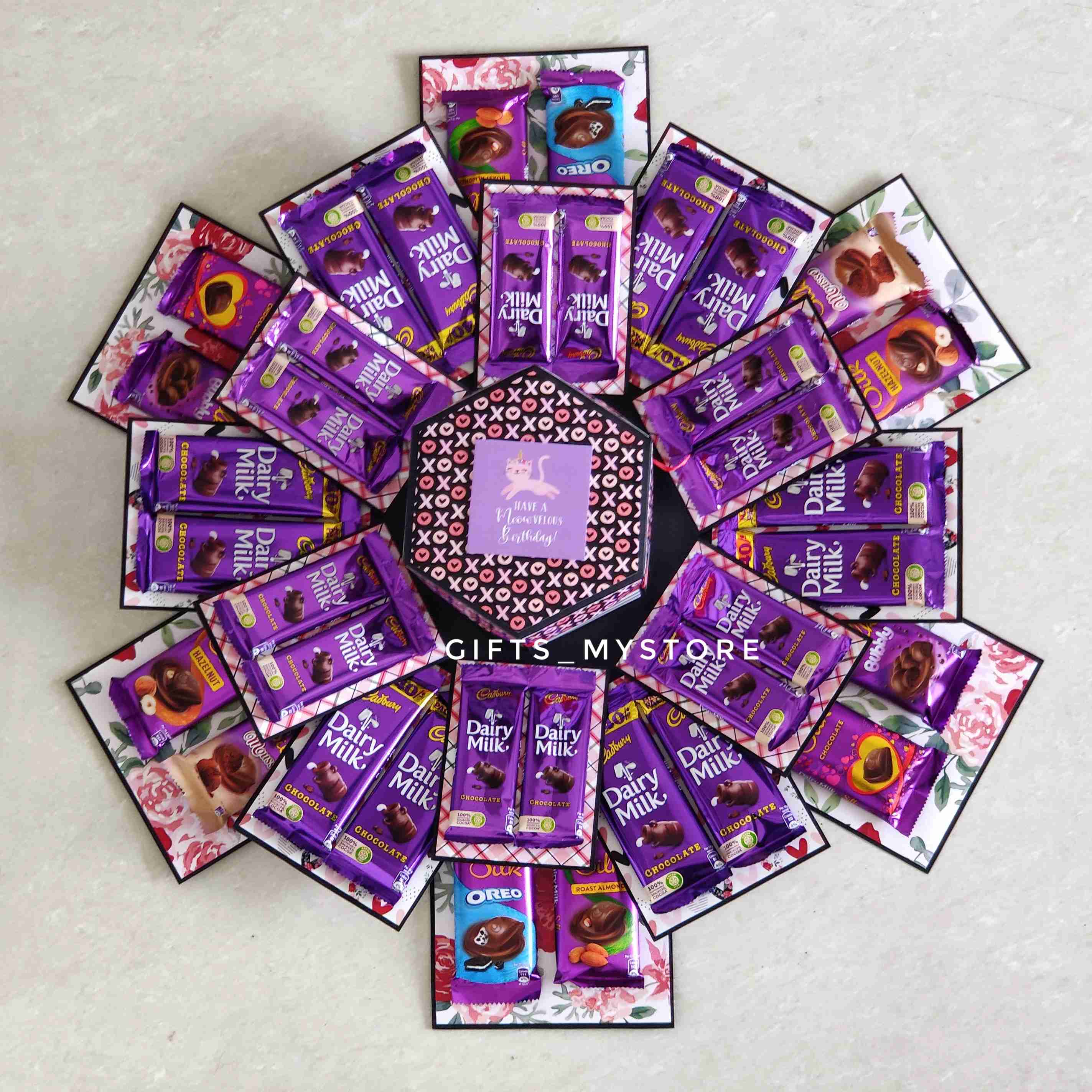 Surprise your loved ones with this luxuriously crafted and Decorated Premium Chocolate explosion box. Each layer reveals silky chocolate treasures, designed to melt hearts and create sweet memories.