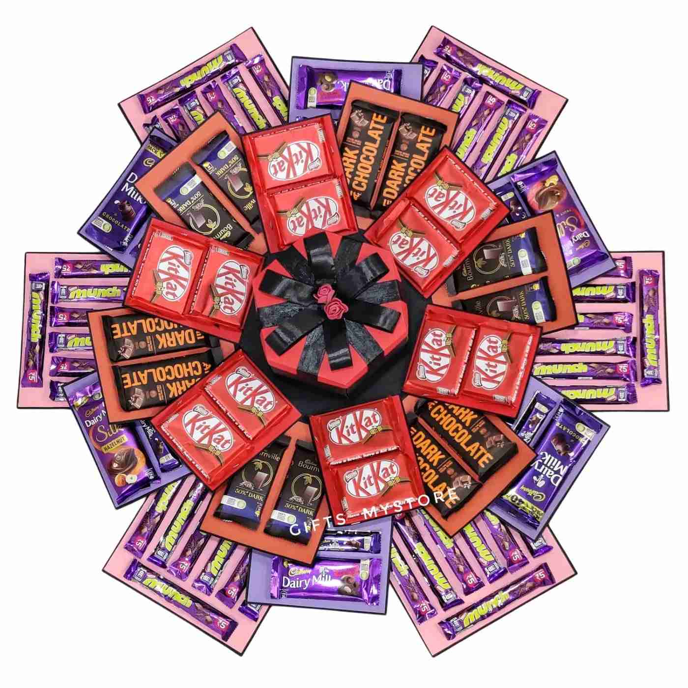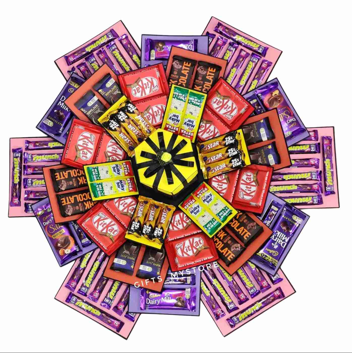 Amaze your loved ones with this artfully crafted chocolate explosion box. Each layer unveils delightful treats, making every moment unforgettable.