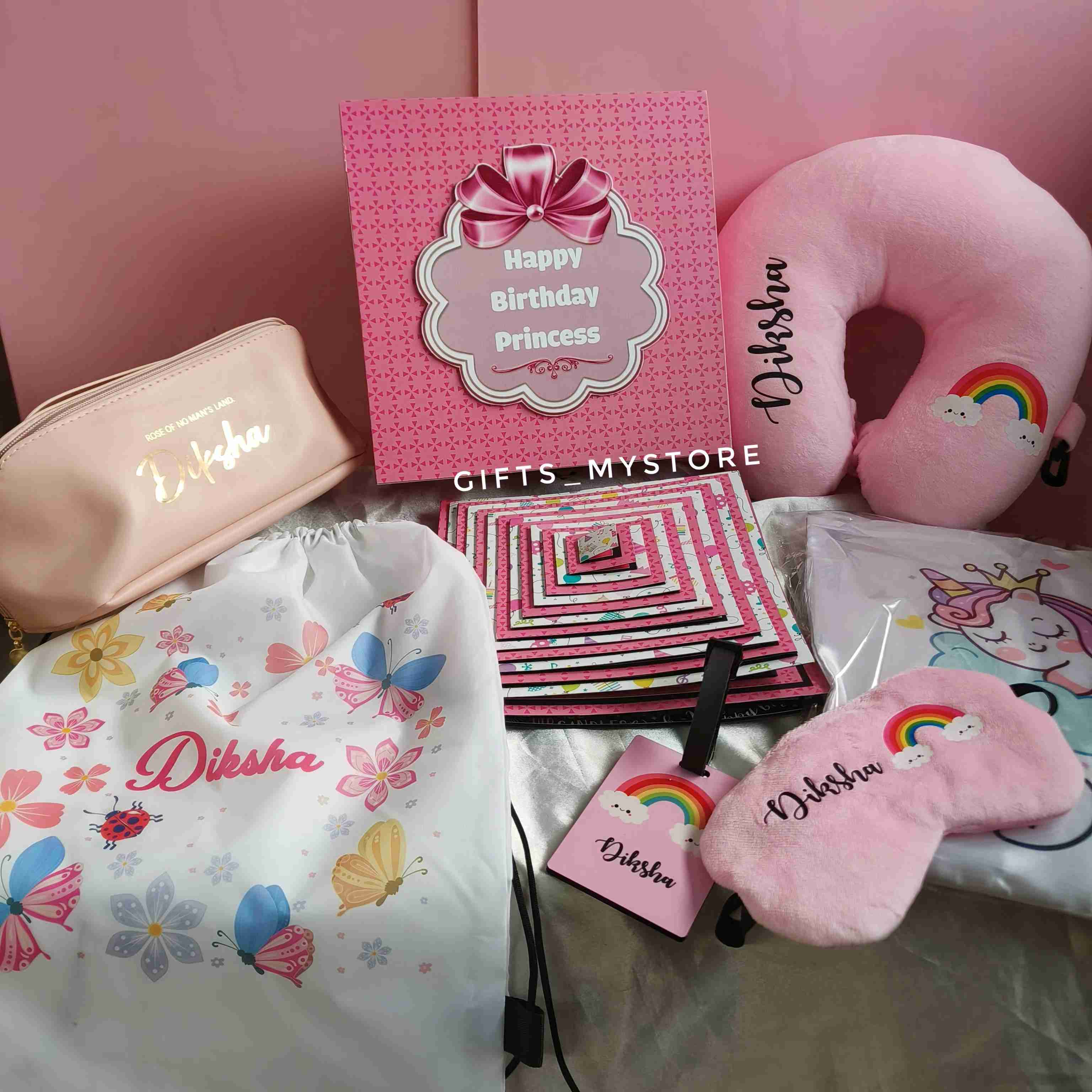 The outer box features an elegant pink design with a cute bow and the message “Happy Birthday Princess”. When opened, multiple layered panels cascade outward, revealing beautifully patterned pages ready for photos, heartfelt messages, and personalized decorations.