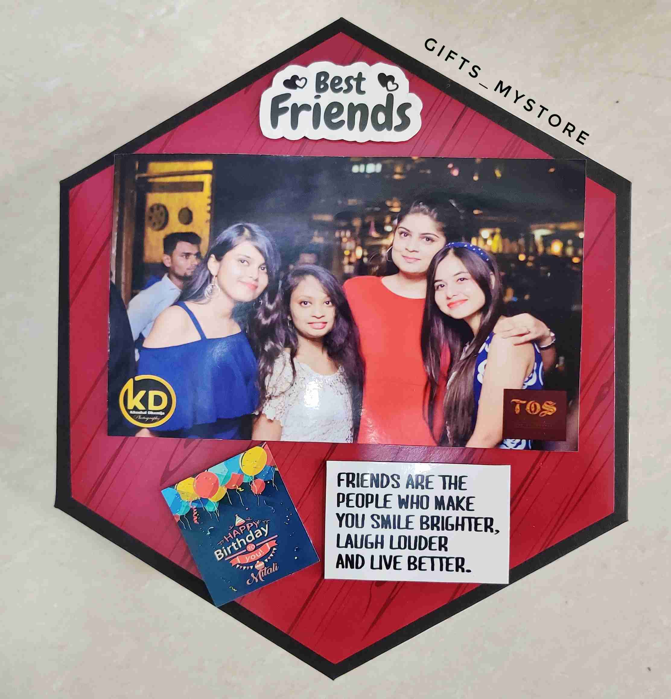 Each tier unfolds to reveal beautifully arranged personalized photos, themed patterned panels, and heartfelt messages. The top hexagon lid adds the final surprise, completing the tower look that stands proudly once opened. This design is perfect for showcasing group memories — friends, siblings, couples, or family celebrations — all in one extraordinary keepsake.