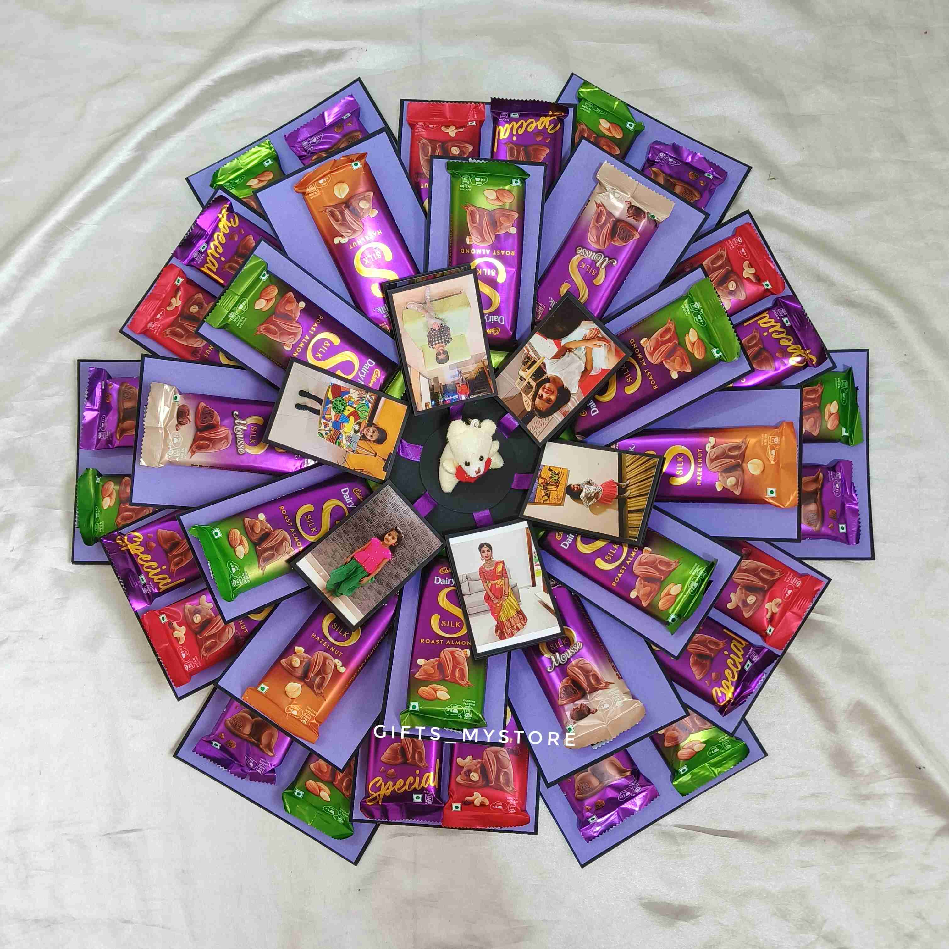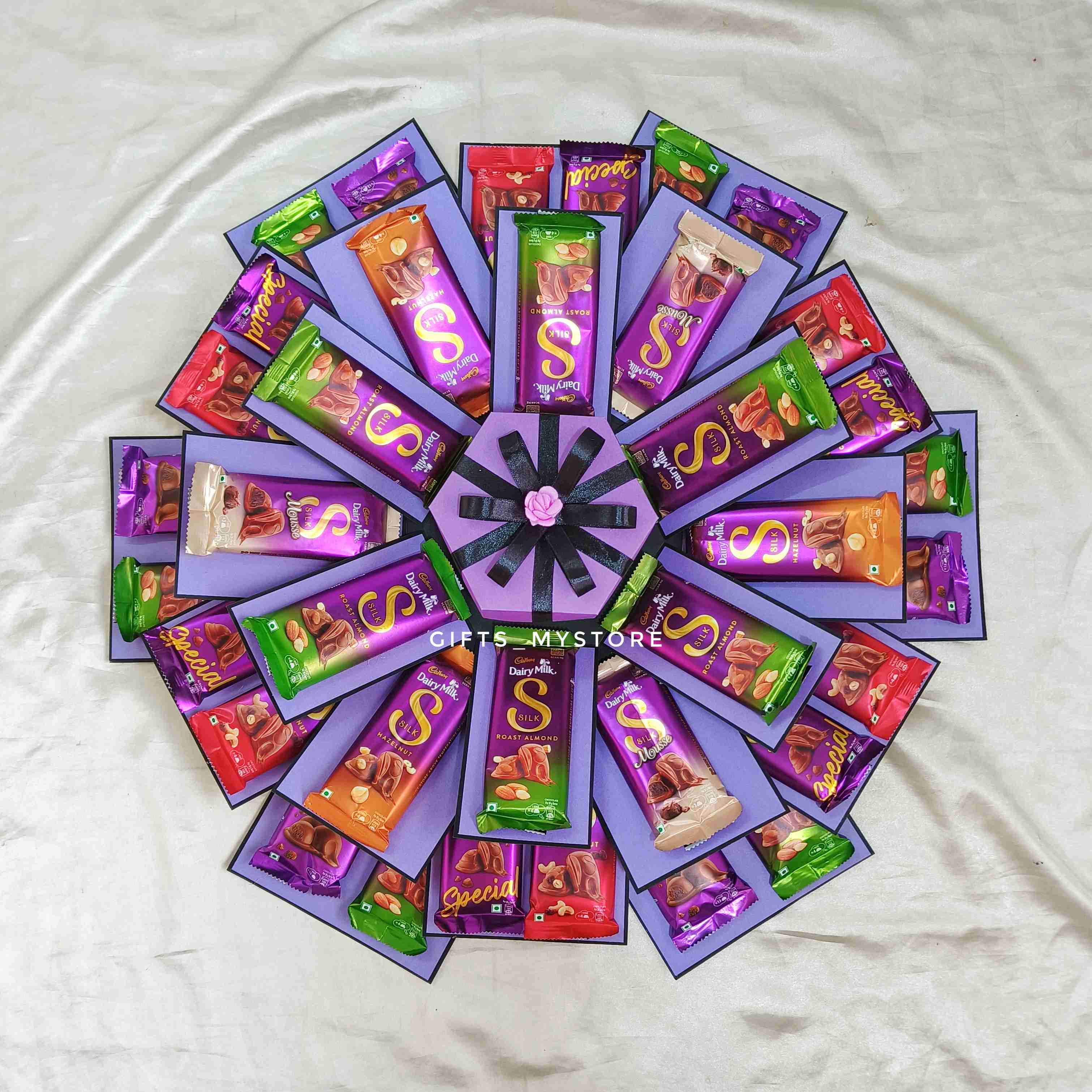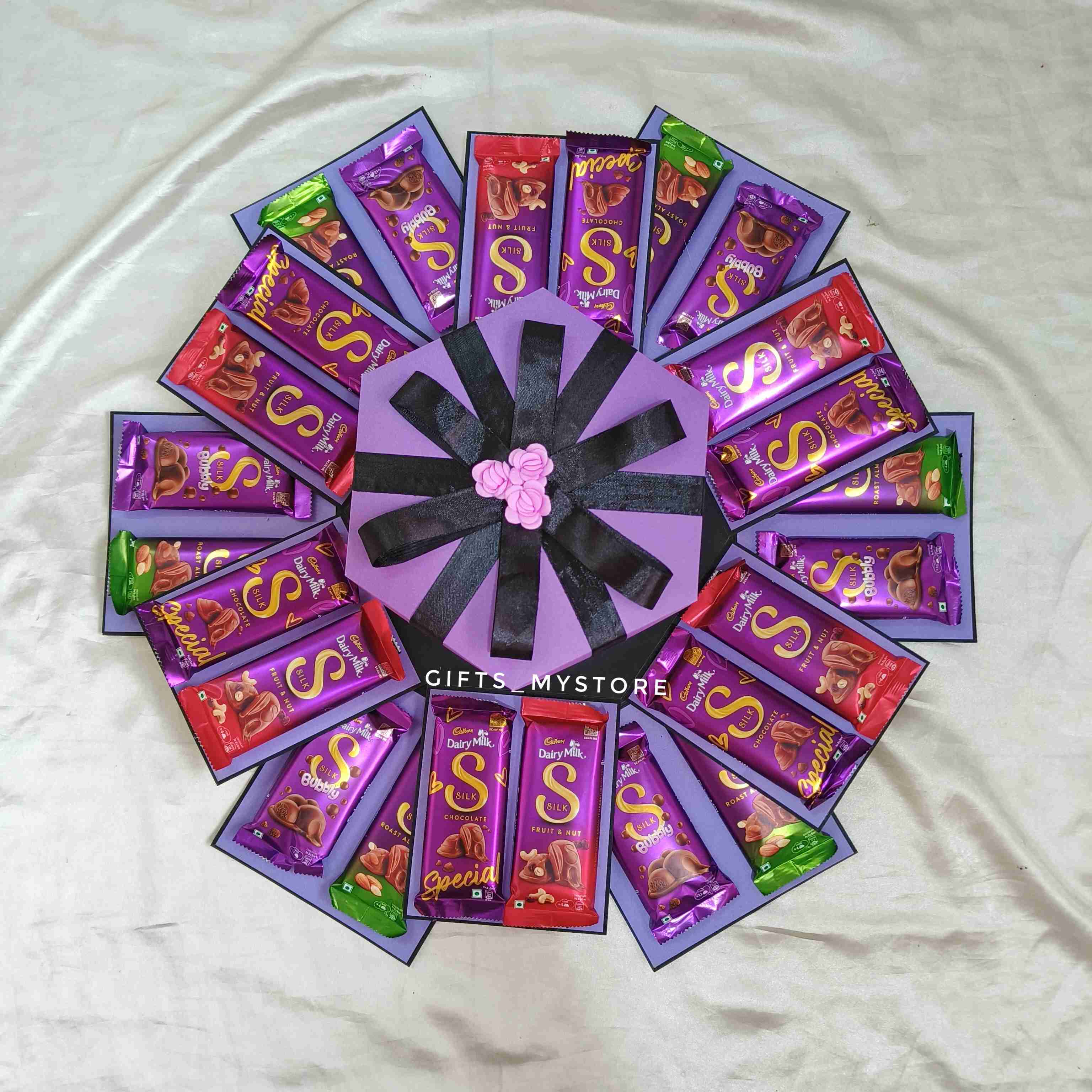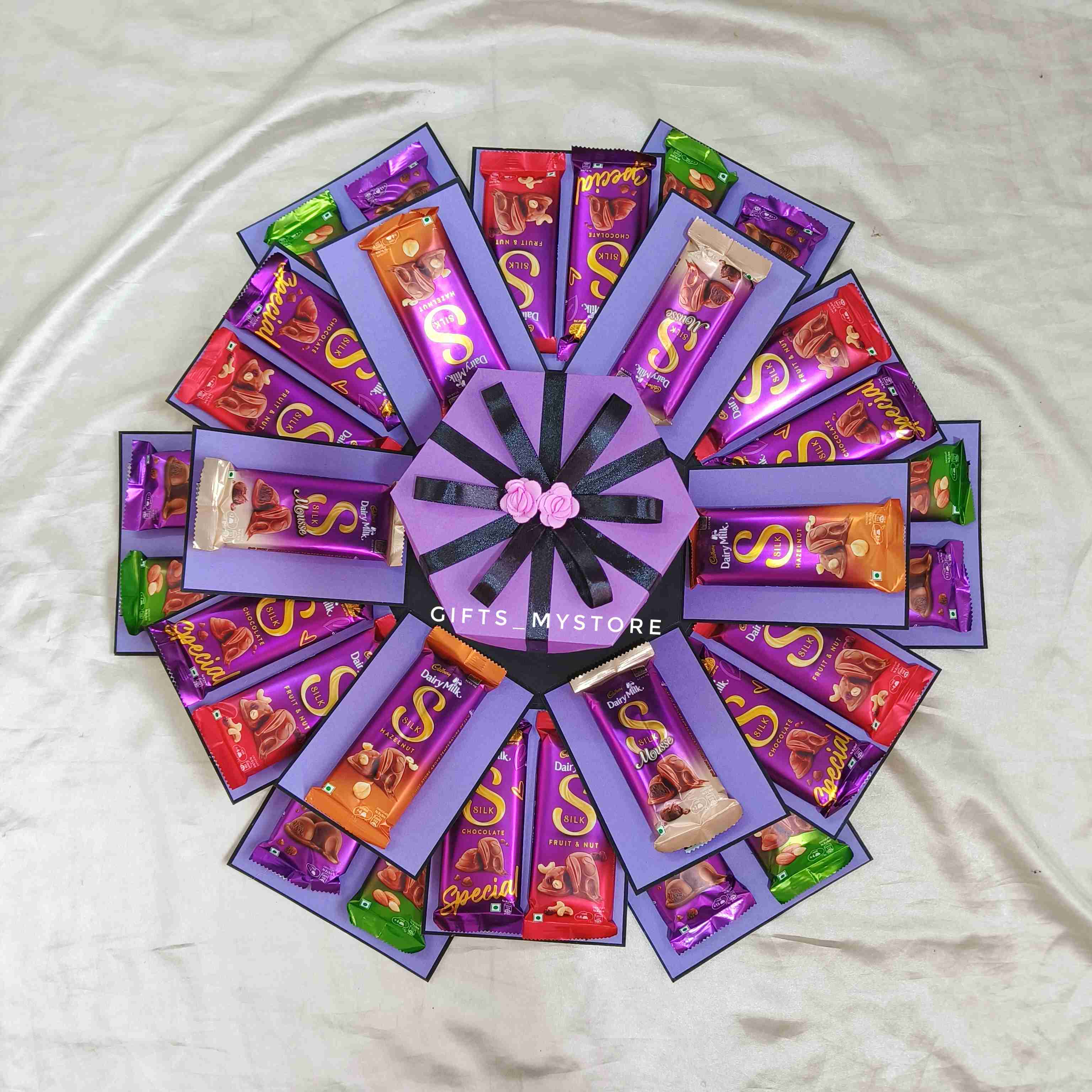 Surprise your loved ones with this luxuriously crafted premium Dairy Milk Silk explosion box. Each layer reveals silky chocolate treasures, designed to melt hearts and create sweet memories.