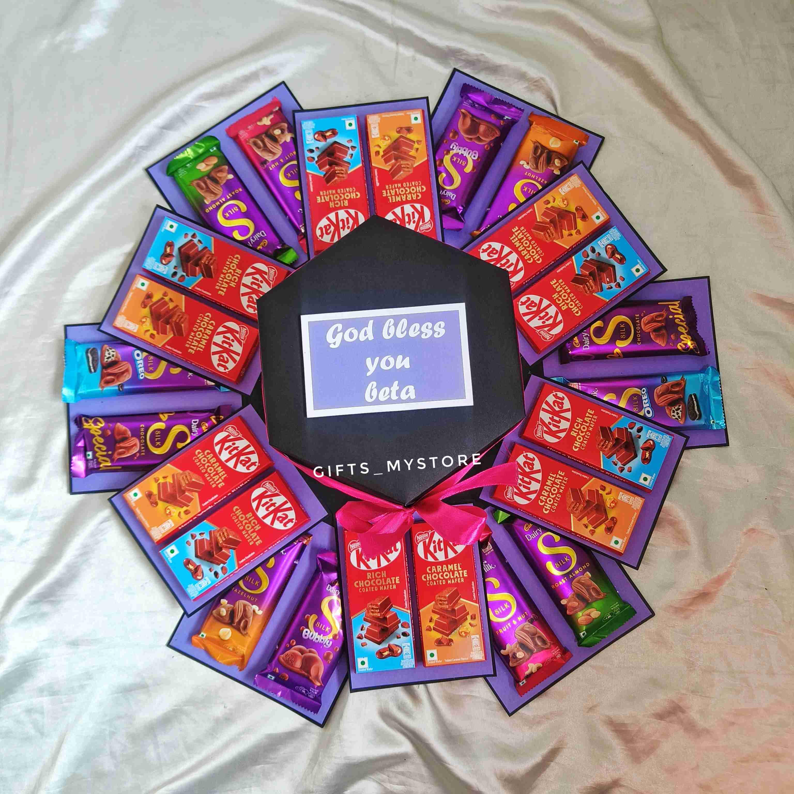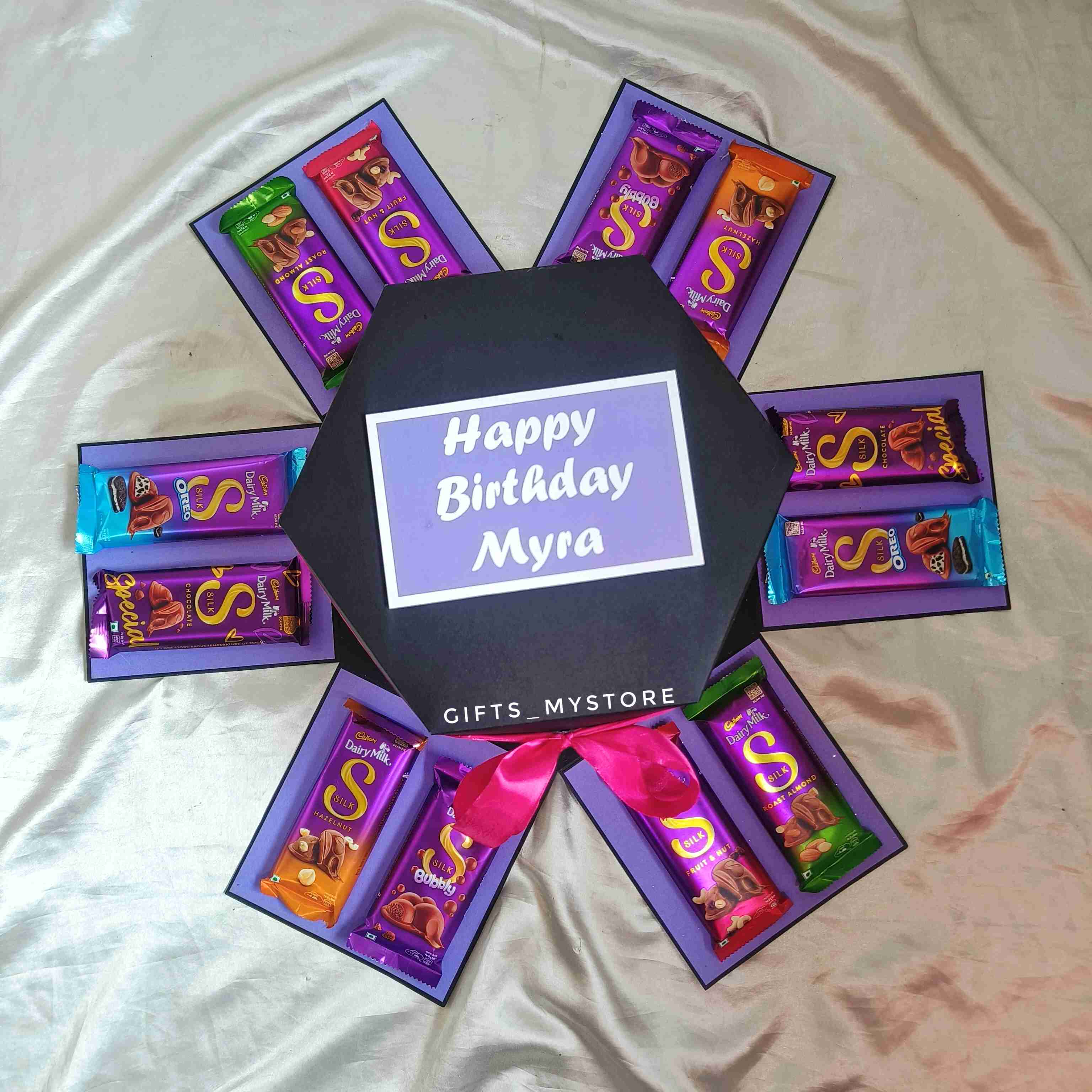 Surprise your loved ones with this luxuriously crafted premium Dairy Milk Silk explosion box. Each layer reveals silky chocolate treasures, designed to melt hearts and create sweet memories.